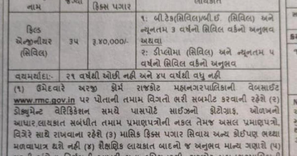 Field Engineer (Civil) in Rajkot Mahanagar Palika