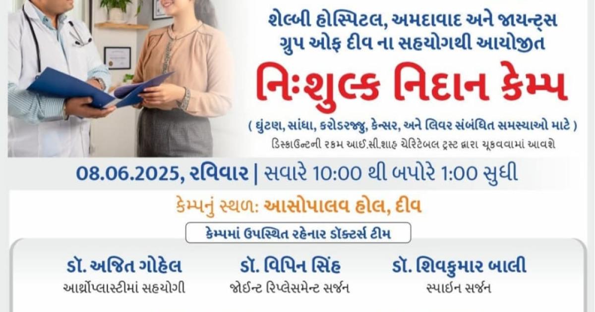 Free Health checkup Spinal, Lever, Knee by Shalby Hospital in Diu at Ashopalav Hotel, Diu.