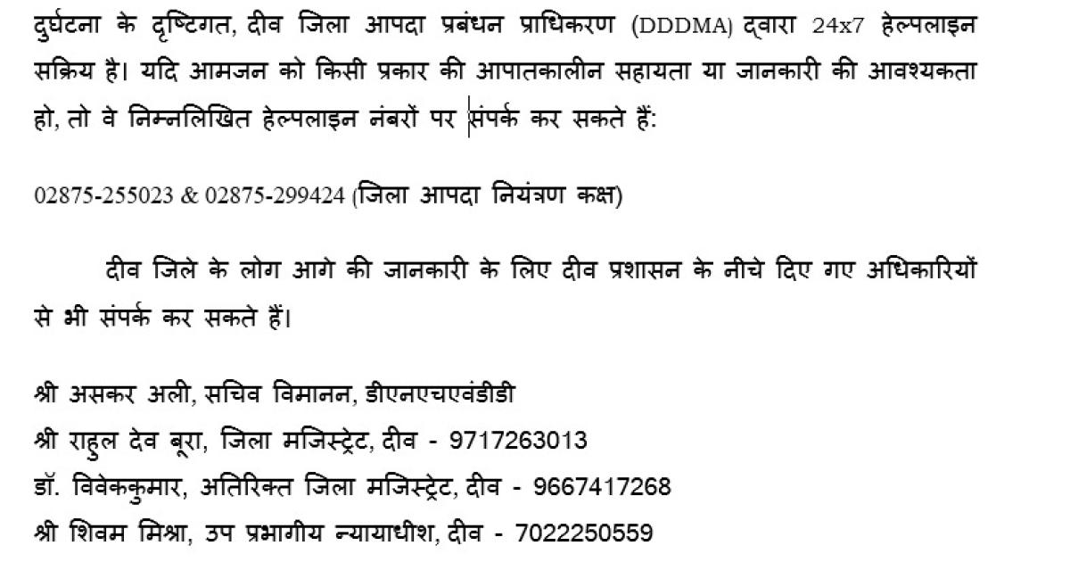 DIU HELPLINE NUMBER AHEMDABAD PLAN CRASH