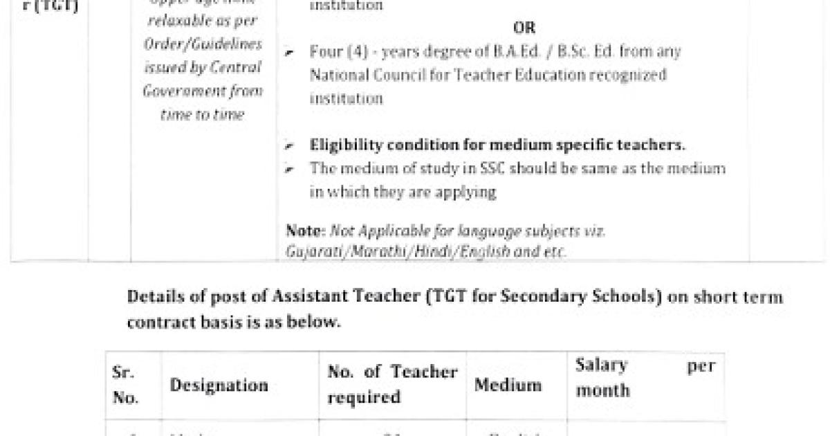 Assistant Teacher (TGT) short term contract basis Interview.